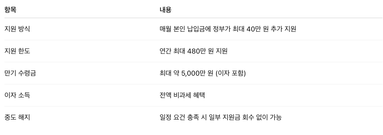 높은 금리, 정부지원금, 비과세 혜택이라는 3박자를 모두 갖춘 만큼, 경제적 여유를 만들고 싶은 청년이라면 반드시 검토해볼 가치가 있습니다.