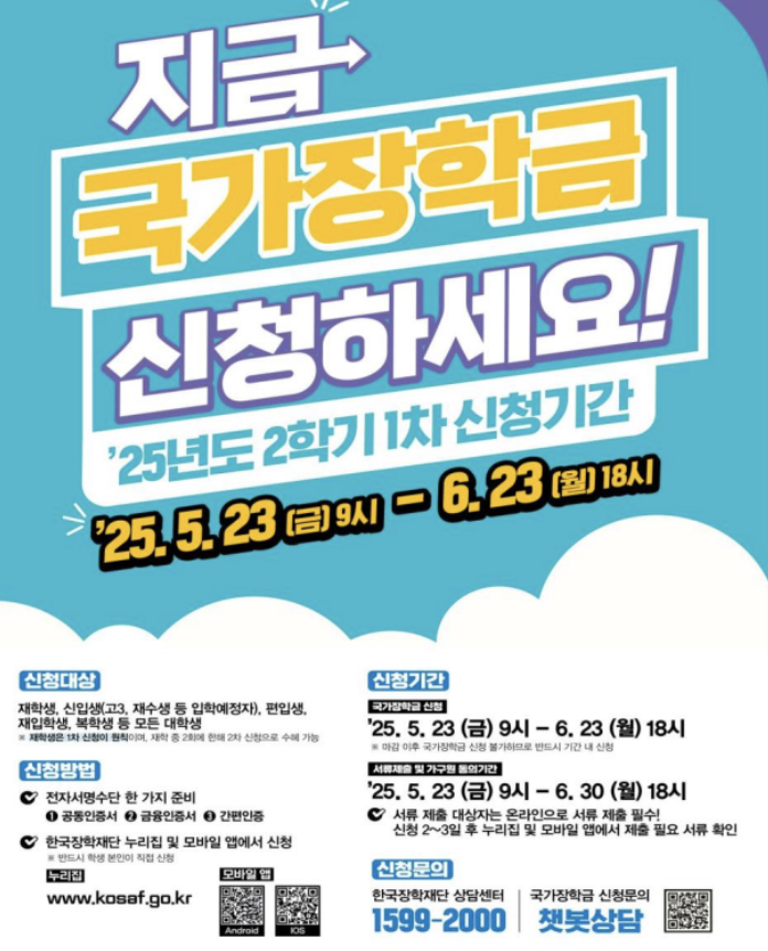 ✅ 신청 방법: www.kosaf.go.kr 또는 한국장학재단 앱