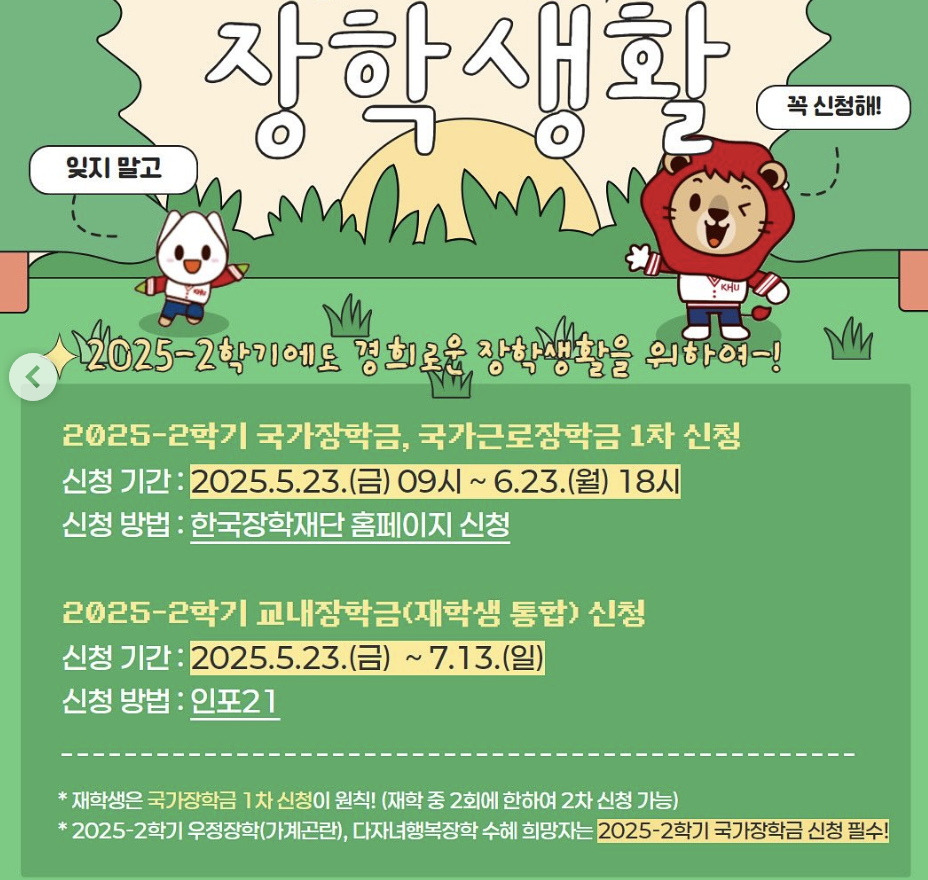 - 국가장학금 신청 일정 확인