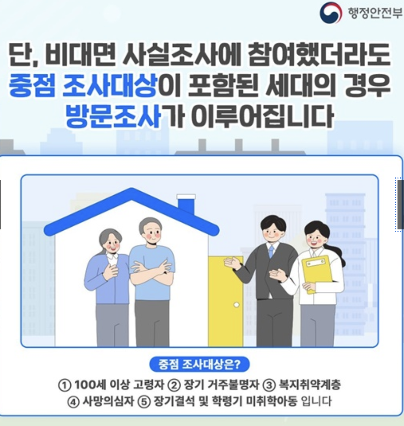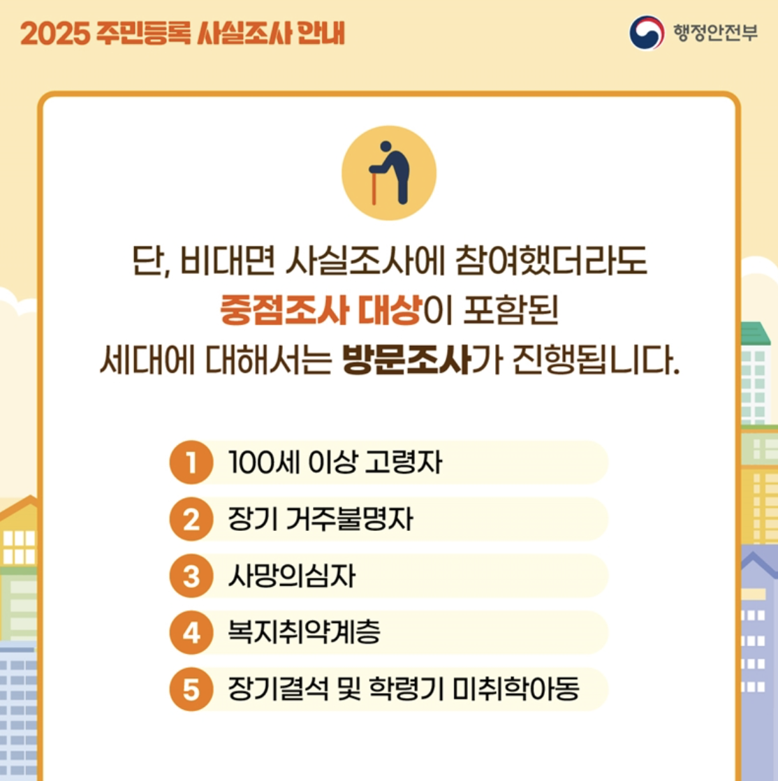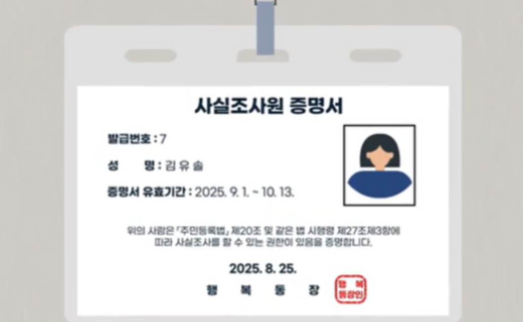 즉, 이번 조사는 단순한 주소 확인이 아니라 정확한 행정 서비스와 공정한 복지 분배를 위한 필수 절차라 할 수 있습니다.