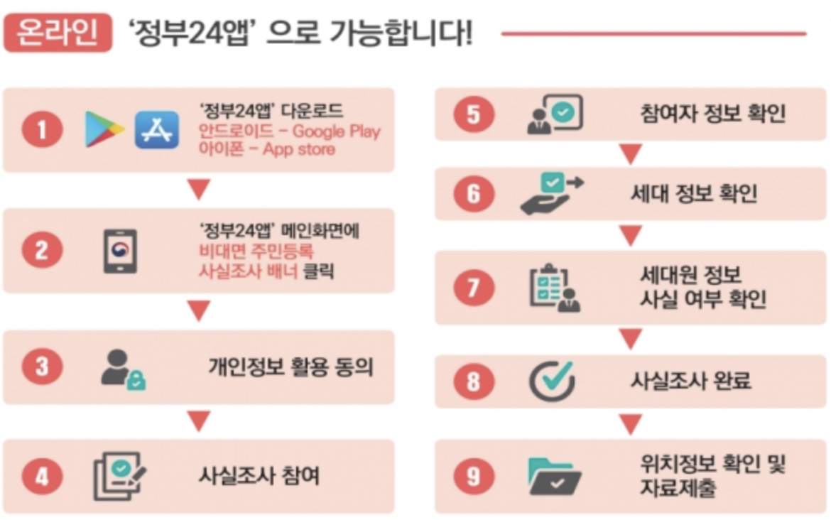 - 대면 조사: 비대면 확인이 불가능하거나 불일치가 발생한 경우, 8월 말 이후 읍·면·동 주민센터 직원이 방문하여 직접 확인