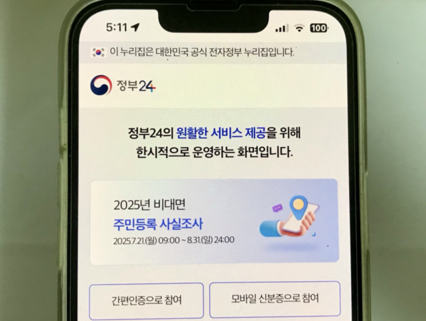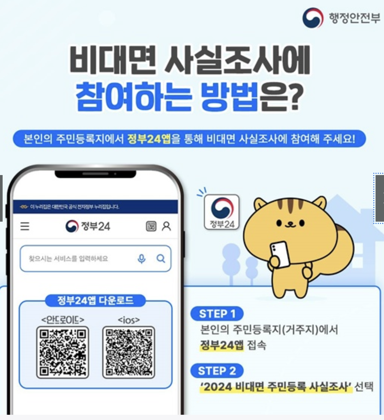 - 조사 방식: 정부24, 모바일 앱, 문자 안내 등을 통한 온라인 확인