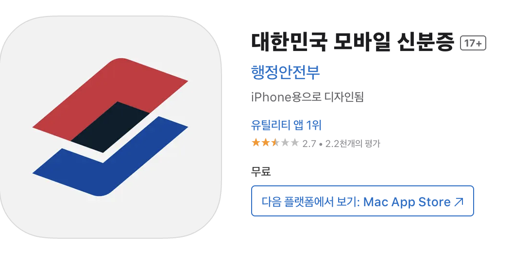 | 발급 방법 | 모바일 신분증 앱 | PASS 앱 또는 정부 공식 앱 |