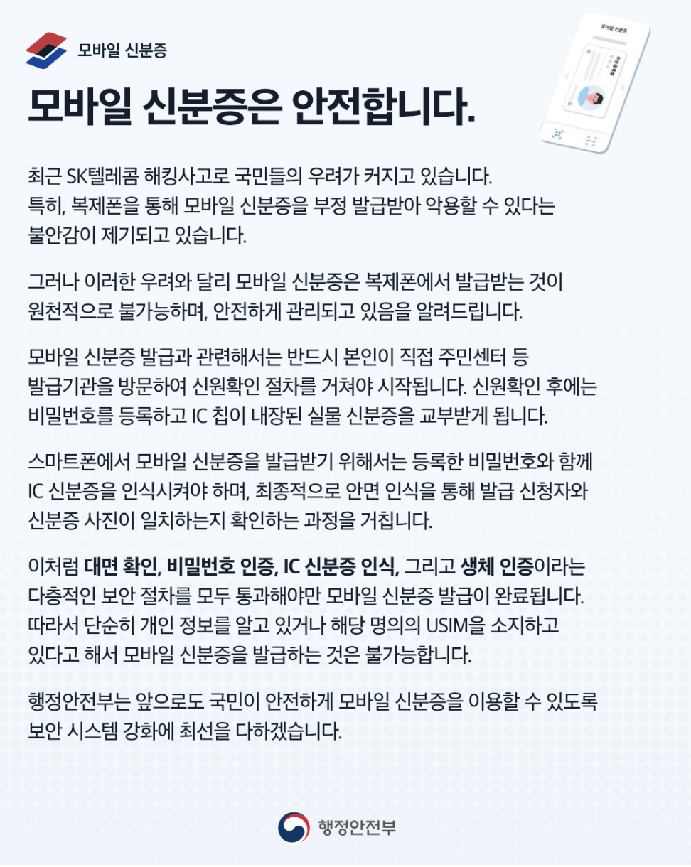 - 모바일 신분증 앱 비밀번호를 타인과 공유하지 않기