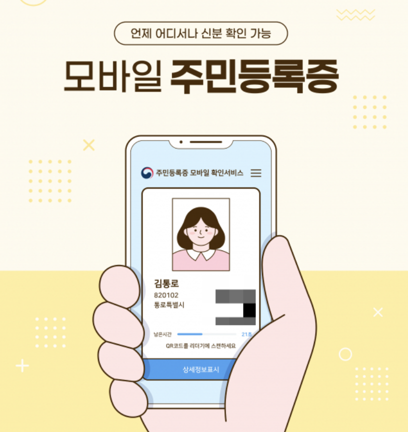 모바일 주민등록증은 기존 주민등록증을 디지털화하여 스마트폰에 담아두는 전자 신분증입니다. 행정안전부가 운영하는 ‘모바일 신분증 앱’을 통해 발급받을 수 있으며, 오프라인에서는 QR코드와 바코드로 본인 확인을 할 수 있고, 온라인에서는 간편 인증을 통해 본인임을 증명할 수 있습니다.