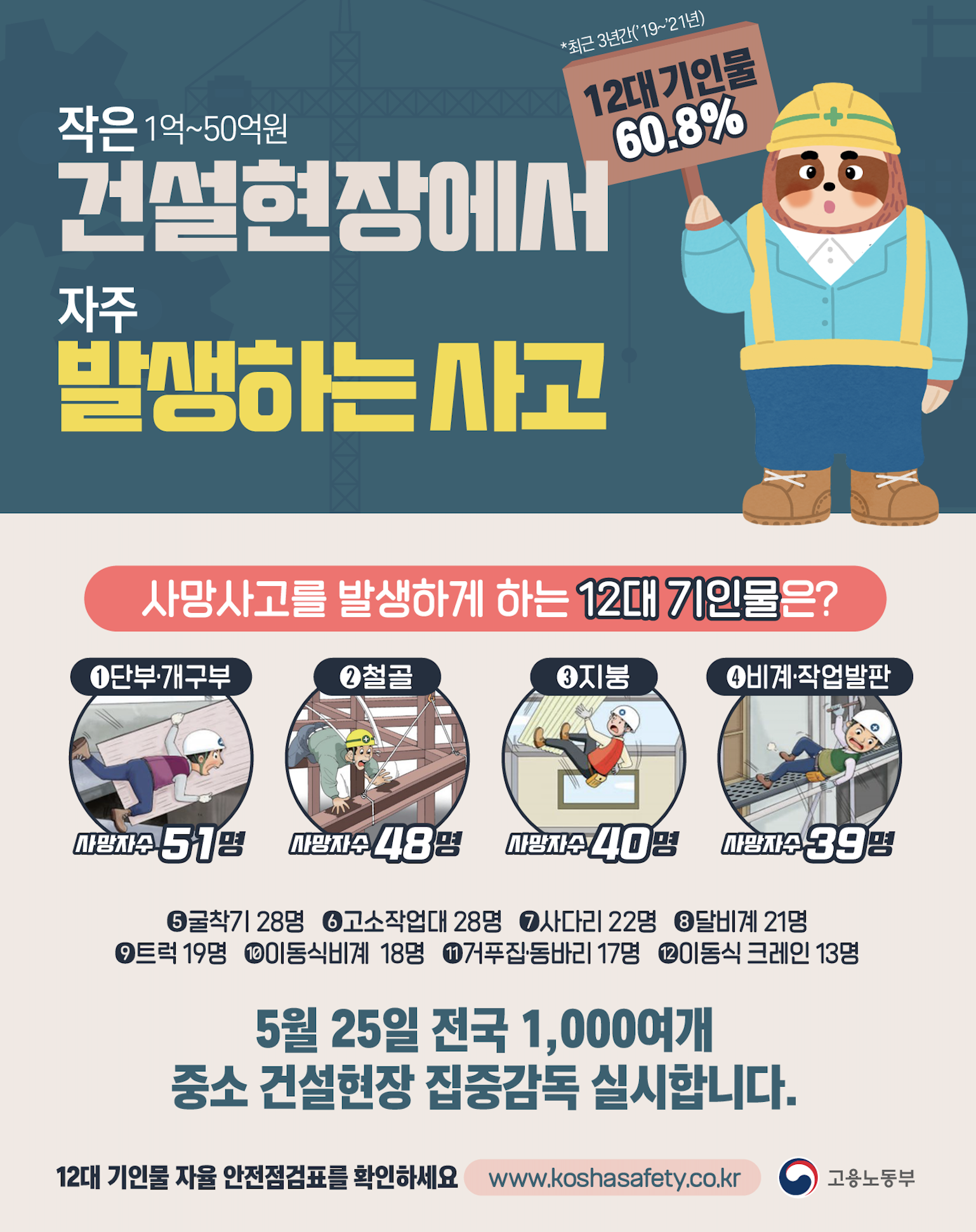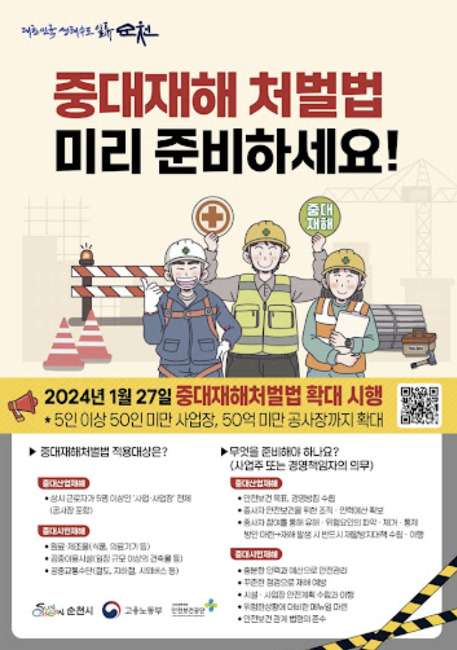 건설업의 경우에도 중요한 변화가 있습니다. 종전에는 공사금액 50억 원 이상이라는 조건이 있었지만, 2024년부터는 그 기준이 폐지되어 상시근로자 5인 이상이면 공사금액과 관계없이 모두 법 적용 대상이 됩니다. 이는 실제 현장에서 빈번히 발생하는 소규모 건설 현장 사고를 예방하고, 보다 촘촘한 안전망을 구축하기 위한 조치입니다.