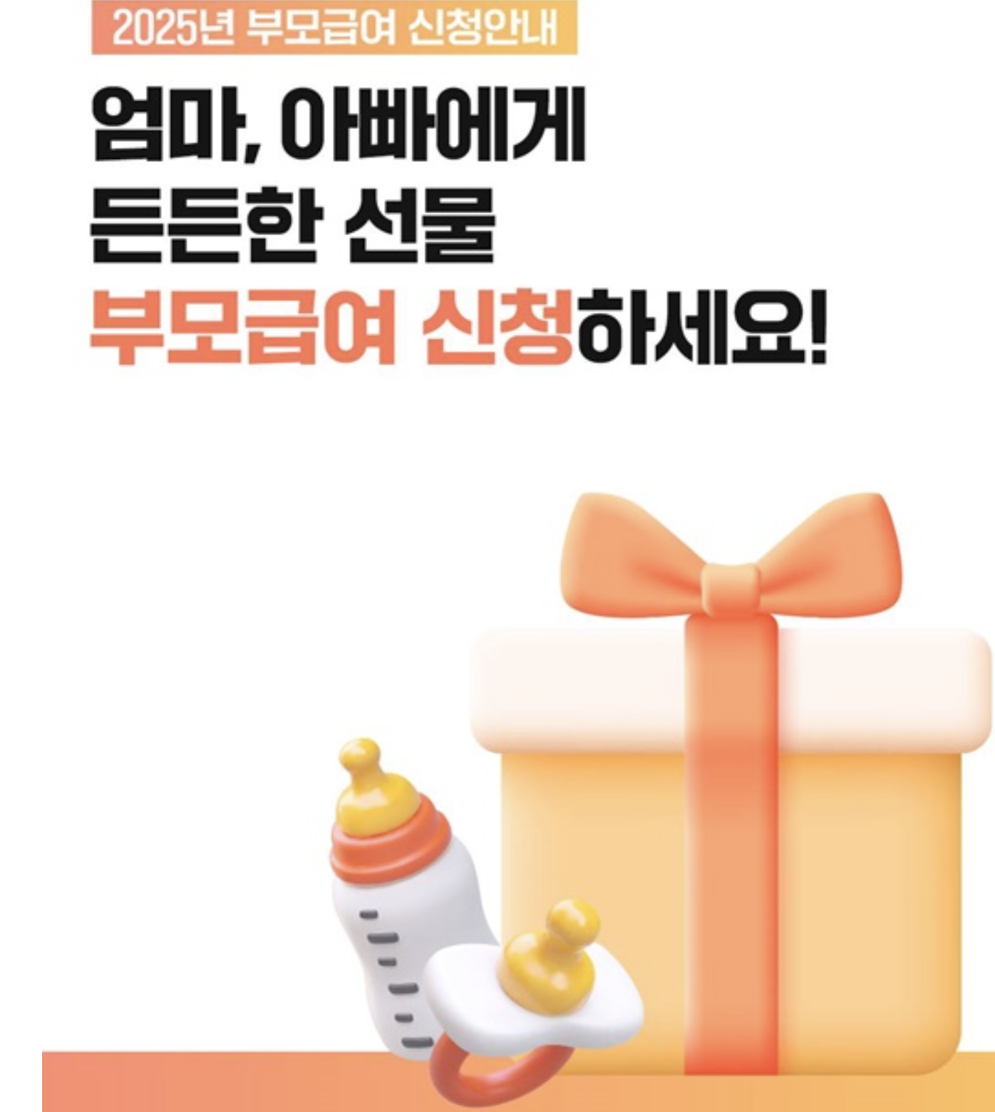 부모급여는 만 0세와 만 1세 영유아를 양육하는 가정에 지급되는 보편적 아동 양육 지원금입니다.