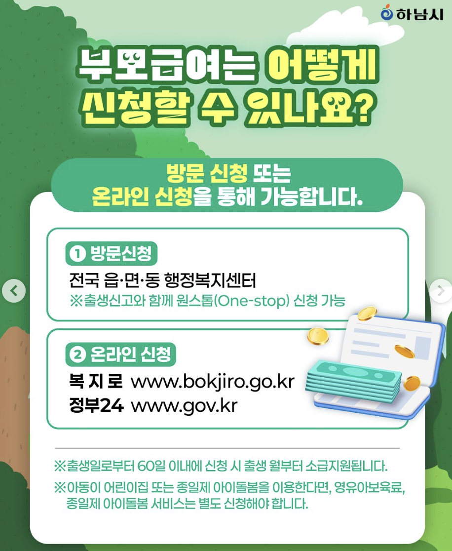 단, 출생 후 60일 이내 신청해야 출생 월분까지 소급 지급 가능.